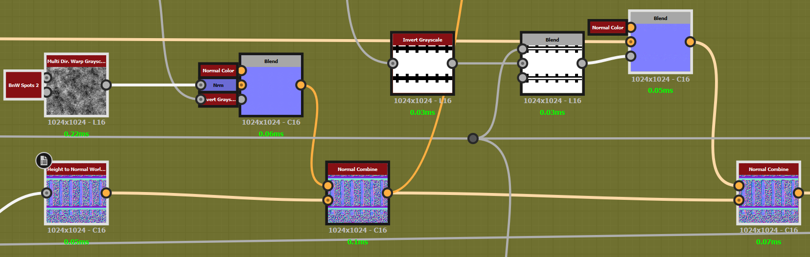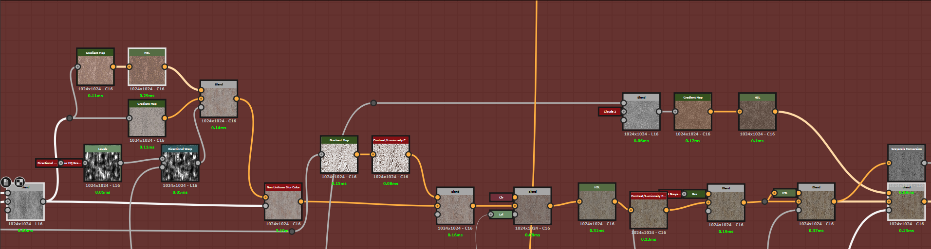 With a better vision and idea in mind, I was ready to start blending and tweaking nodes in Substance Designer.